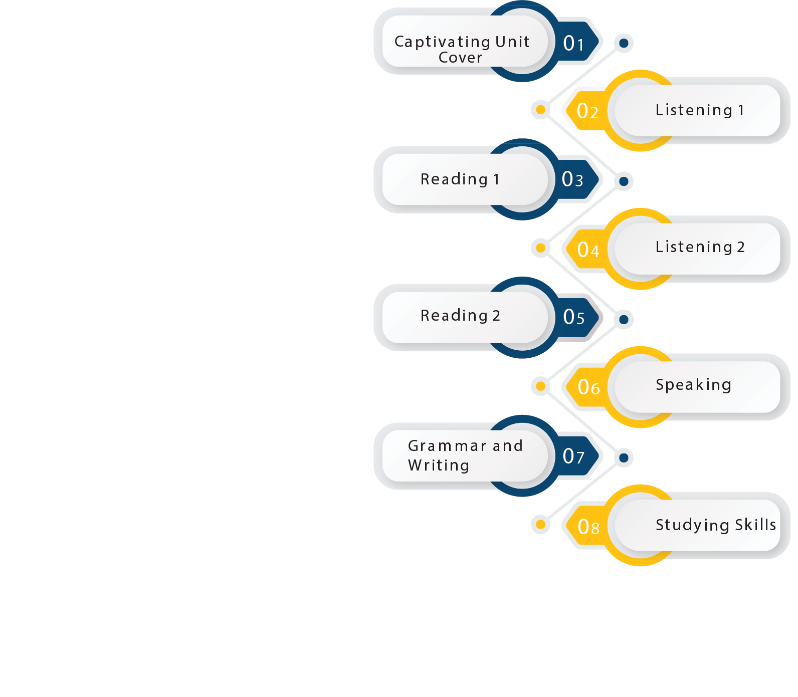 Explicit practice for Listening, Reading, Speaking, Grammar, and Studying Skills